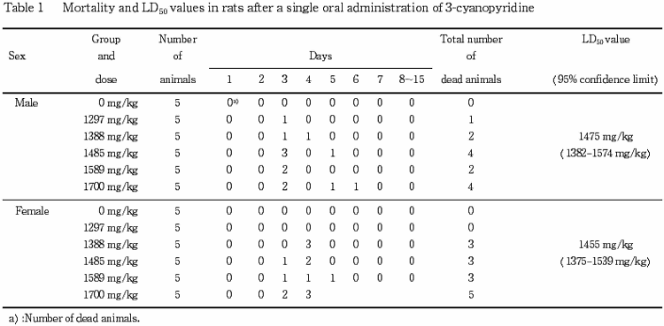 Single Dose Oral Toxicity Test of 3-Cyanopyridine in Rats