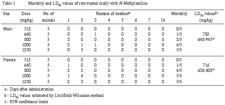N-メチルアニリンのラットを用いる単回経口投与毒性試験