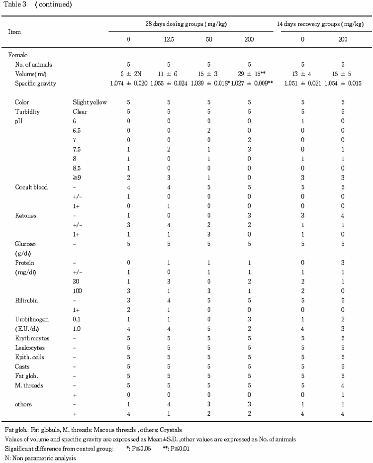 ¤½¤Î¾¡¤Íº¤Ç¤ÏÂоȷ²¤ÇÅêÍ¿13Æü¤«¤é10ÎãÃæ1Îã¤Ë¡¤¤µ¤é¤Ë²óÉü14Æü¤Ë¤ª¤¤¤Æ¤â5ÎãÃæ1Îã¤Ë·ÚÅÙ¤ÎðôÉô¤Þ¤¿¤ÏÁ°»è¤Î³°½ý¤¬¡¤¤Þ¤¿50 mg/kg·²¤Ç¤ÏÅêÍ¿28Æü¤Ë1Îã¤Ç·ÚÅ٤λõ¤Î°Û¾ï¤¬´Ñ»¡¤µ¤ì¤¿¤¬¡¤¤³¤ì¤é¤Ï¤¤¤º¤ì¤âÍÑÎ̤ËÂбþ¤·¤¿¾É¾õ¤Ç¤Ï¤Ê¤«¤Ã¤¿¡¥