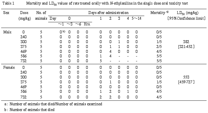 N-エチルアニリンのラットを用いる単回経口投与毒性試験