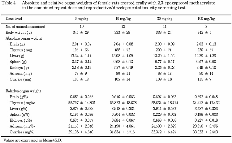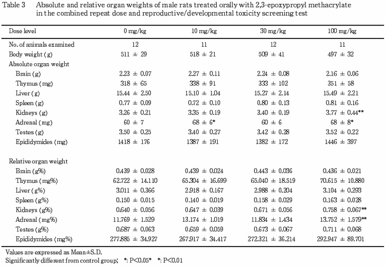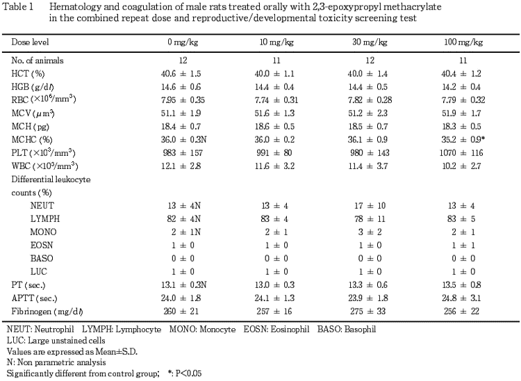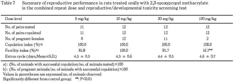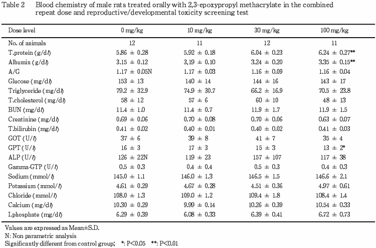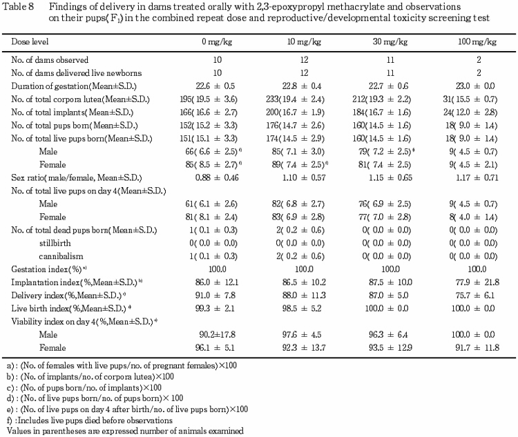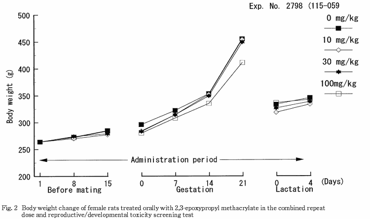 °Ê¾å¤Î·ë²Ì¤«¤é¡¤Ëܻ¾ò·ï²¼¤Ë¤ª¤±¤ë¥á¥¿¥¯¥ê¥ë»À2,3-¥¨¥Ý¥¥·¥×¥í¥Ô¥ë¥¨¥¹¥Æ¥ë¤ÎÈ¿ÉüÅêÍ¿ÆÇÀ¤Ë´Ø¤¹¤ë̵±Æ¶ÁÎÌ(NOEL)¤Ïͺ¤Ç10 mg/kg/day¡¤»ó¤Ç30 mg/kg/day¤È¹Í¤¨¤é¤ì¤¿¡¥¤Þ¤¿¡¤Íº¤ÎÀ¸¿£¤ËµÚ¤Ü¤¹±Æ¶Á¤Ï100 mg/kg/dayÅêÍ¿¤Ë¤è¤êÀº»Ò³èÎϤÎÄã²¼¤Ëµ¯°ø¤¹¤ë¤È¹Í¤¨¤é¤ì¤ë¼øÂÛǽ¤ÎÄã²¼¤¬Ç§¤á¤é¤ì¡¤Ìµ±Æ¶ÁÎÌ(NOEL)¤Ï30 mg/kg/day¤È¹Í¤¨¤é¤ì¤¿¡¥»ó¤ÎÀ¸¿£¤ËµÚ¤Ü¤¹±Æ¶Á¤ÏÄɲü¸³¤Î·ë²Ì¤«¤é100 mg/kg/dayÅêÍ¿¤Ë¤è¤ê¼õÂÛǽ¤Ë¼ã´³¤Î±Æ¶Á¤¬Ç§¤á¤é¤ì¡¤Ìµ±Æ¶ÁÎÌ(NOEL)¤Ï30 mg/kg/day¤ÈȽÃǤµ¤ì¤¿¡¥»ùưʪ¤ÎȯÀ¸¡¦È¯°é¤ËµÚ¤Ü¤¹±Æ¶Á¤Ï¡¤100 mg/kg/dayÅêÍ¿¤Ë¤è¤Ã¤Æ¤âǧ¤á¤é¤ì¤º¡¤Ìµ±Æ¶ÁÎÌ(NOEL)¤Ï100 mg/kg/day¤È¹Í¤¨¤é¤ì¤¿¡¥
