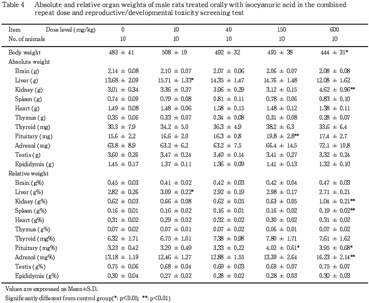 ¤Ê¤ª¡¤ºÇ½ªÂνŤ¬Âоȷ²¤ÈÈæ¤Ù¤Æ¾®¤µ¤«¤Ã¤¿600 mg/kg·²¤Ç¡¤Íº¤Ï²¼¿âÂΤª¤è¤Óç£Â¡¡¤»ó¤ÏǾ¤Î¤¤¤º¤ì¤âÁêÂнÅÎ̤¬Áý²Ã¤·¡¤²¼¿âÂνÅÎ̤ÎÊѲ½¤Ï150 mg/kg·²¤Îͺ¤Ë¤âǧ¤á¤é¤ì¤¿¤¬¡¤¤³¤ì¤é¤Î´ï´±¤ËÉÂÍýÁÈ¿¥³ØÅªÊѲ½¤Ïǧ¤á¤é¤ì¤Ê¤«¤Ã¤¿¡¥¤·¤¿¤¬¤Ã¤Æ¡¤²¼¿âÂΡ¤ç£Â¡¤ª¤è¤ÓǾ¤Î½ÅÎÌÊѲ½¤Ï¼ç¤ËÂνŤÎÊѲ½¤Ëȼ¤¦½ê¸«¤Ç¡¤ÆÇÀ±Æ¶Á¤ò¼¨º¶¤¹¤ëÊѲ½¤Ç¤Ï¤Ê¤¤¤ÈȽÃǤµ¤ì¤¿¡¥