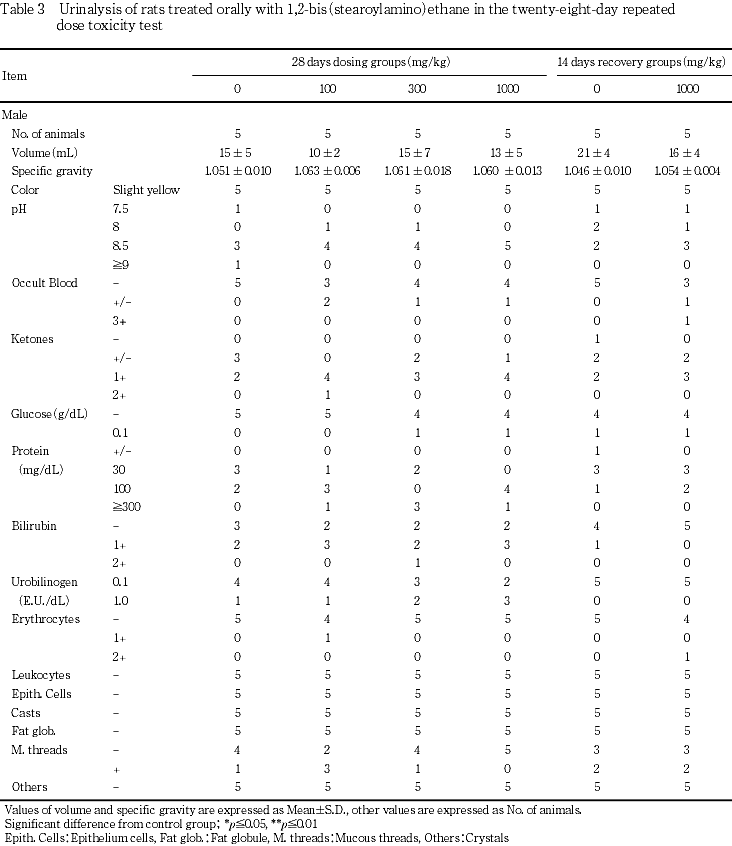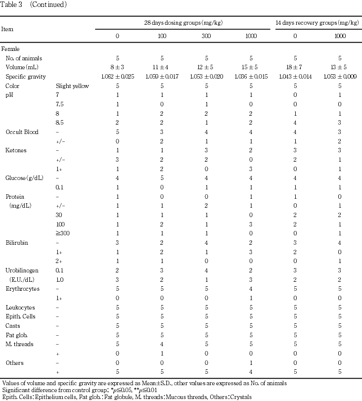 尿検査の結果,雌雄とも被験物質の影響は認められなかった.