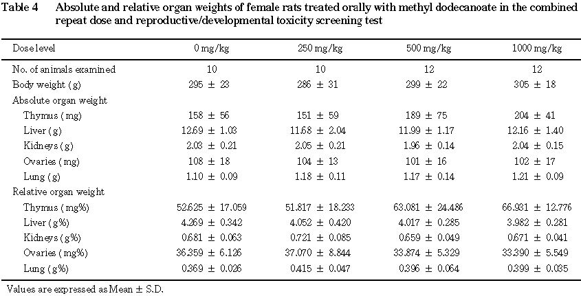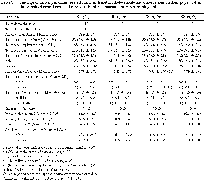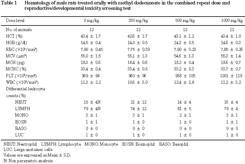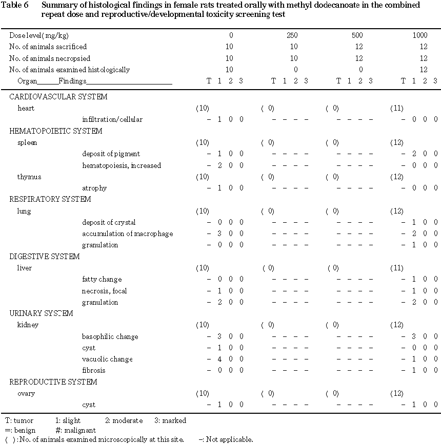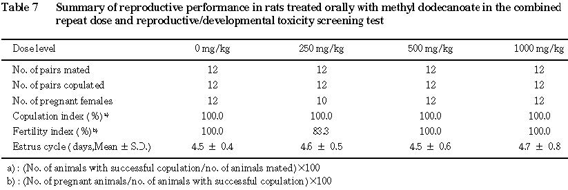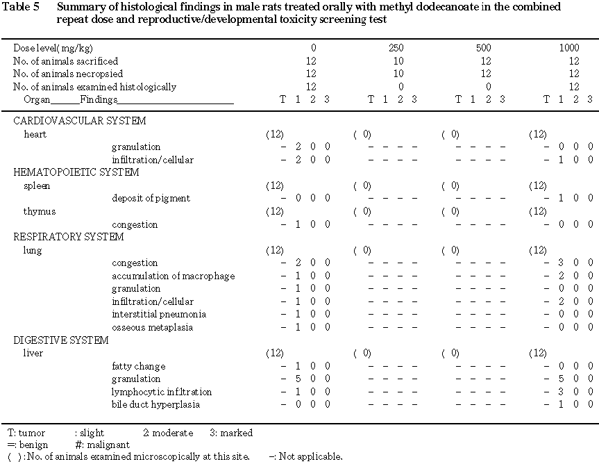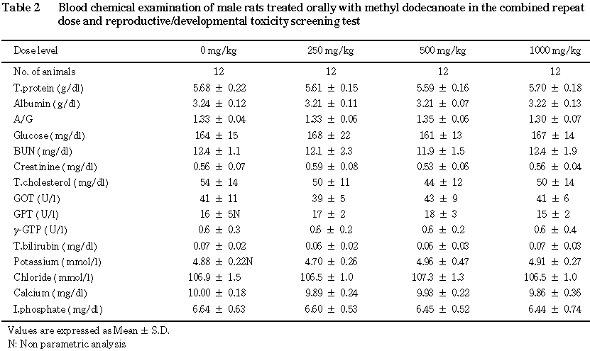 Screening Test of Methyl dodecanoate by Oral Administration in Rats