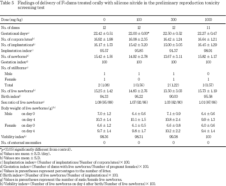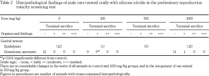 Preliminary Reproduction Toxicity Screening Test of Silicone nitride