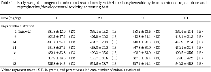 4-¥á¥È¥¥·¥Ù¥ó¥º¥¢¥ë¥Ç¥Ò¥É¤Ï¡¤¹áÎÁ¤ä²½¾ÑÀи´¤Î¸¶ºàÎÁ¤È¤·¤Æ»ÈÍѤµ¤ì¤ë¤Û¤«1)¡¤Æü¾Æ¤±ËɻߤòÌÜŪ¤È¤¹¤ëUV-B¥Ö¥í¥Ã¥«¡¼¤Ç¤¢¤ë¥¨¥Á¥ë-2-¥Ø¥¥·¥ë-¥á¥È¥¥·-¥·¥ó¥Ë¥á¥¤¥ÈÅù¤Î²½³ØÊª¼Á¤Î¸¶ÎÁ¤È¤·¤Æ¡¤¶áǯ¼ûÍפ¬Áý²Ã¤·¤Æ¤¤¤ë2, 3)¡¥¤³¤Î¤¿¤Ó¡¤¤³¤Îʪ¼Á¤ÎÈ¿ÉüÅêÍ¿ÆÇÀ¡¦À¸¿£È¯À¸ÆÇÀÊ»¹ç»î¸³¤ò¹Ô¤¤¡¤¿ÆÆ°Êª¤ËÂФ¹¤ëÈ¿ÉüÅêÍ¿ÆÇÀ¤ª¤è¤ÓÀ¸¿£Ç½ÎϤʤé¤Ó¤Ë¼¡À¤Âå»ù¤ÎȯÀ¸¡¦È¯°é¤ËµÚ¤Ü¤¹±Æ¶Á¤Ë¤Ä¤¤¤Æ¸¡Æ¤¤·¤¿¡¥¤¹¤Ê¤ï¤Á¡¤Sprague-Dawley·Ï(Crj:CD(SD)IGS)¥é¥Ã¥È¤Î»óͺ(³Æ13ɤ/·²)¤Ë¡¤4-¥á¥È¥¥·¥Ù¥ó¥º¥¢¥ë¥Ç¥Ò¥É¤Î0(ÇÞÂÎ)¡¤20¡¤100¤ª¤è¤Ó500 mg/kg¤ò¸òÇÛÁ°2½µ´Ö¤Ê¤é¤Ó¤Ë¸òÇÛ´ü´Ö2½µ´Ö¤òÄ̤·¤Æ·Ð¸ýÅêÍ¿¤·¡¤¤µ¤é¤Ëͺ¤Ç¤Ï¸òÇÛ´ü´Ö½ªÎ»¸å2½µ´Ö¡¤»ó¤Ç¤ÏÇ¥¿±´ü´Ö¤òÄ̤·¤ÆÊ¬ÊÚ¸åÓ®°é4Æü¤Þ¤ÇÅêÍ¿¤·¤¿¡¥»î¸³·ë²Ì¤Ï°Ê²¼¤Î¤è¤¦¤ËÍ×Ì󤵤ì¤ë¡¥