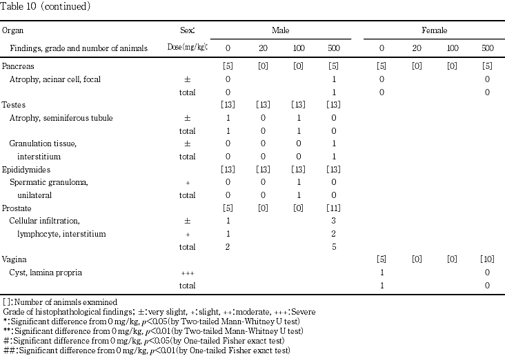 ͺ¤Ç¤Ï100 mg/kgÅêÍ¿·²¤Ë¤ª¤¤¤Æ¤ÏÅêÍ¿35Æü¤Î¡¤500 mg/kgÅêÍ¿·²¤Ë¤ª¤¤¤Æ¤ÏÅêÍ¿7Æü°Ê¹ß¤ÎÀݱÂÎ̤¬¤½¤ì¤¾¤ìͰդËÁý²Ã¤·¡¤»ó¤Ç¤Ï500 mg/kgÅêÍ¿·²¤Ë¤ª¤¤¤ÆÅêÍ¿7¤ª¤è¤Ó13Æü¤ÎÀݱÂÎ̤¬Í°Õ¤ËÁý²Ã¤·¤¿¡¥