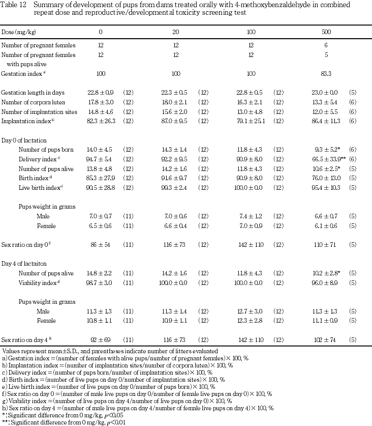 ½ÐÀ¸»ù¤ÎÂνš¤·ÁÂÖ¡¤ÀÈæ¤ª¤è¤Ó¿·À¸»ù¤Î4Æü¤ÎÀ¸Â¸Î¨¤Ë¤Ï4-¥á¥È¥¥·¥Ù¥ó¥º¥¢¥ë¥Ç¥Ò¥ÉÅêÍ¿¤Î±Æ¶Á¤Ïǧ¤á¤é¤ì¤Ê¤«¤Ã¤¿¤¬¡¤500 mg/kgÅêÍ¿·²¤Ë¤ª¤¤¤Æ¤Ï¡¤»º»ù¿ô¡¤Ê¬ÊÚΨ¡¤½Ð»ºÀ¸»ù¿ô¤ª¤è¤ÓÓ®°é4Æü¤ÎÀ¸»ù¿ô¤Ë¸º¾¯¤¬Ç§¤á¤é¤ì¤ë¤³¤È¤«¤é¡¤4-¥á¥È¥¥·¥Ù¥ó¥º¥¢¥ë¥Ç¥Ò¥É¤Î½ÐÀ¸»ù¤Ë¤ª¤±¤ë̵ºîÍÑÎ̤Ï100 mg/kg¤È¹Í¤¨¤é¤ì¤ë¡¥