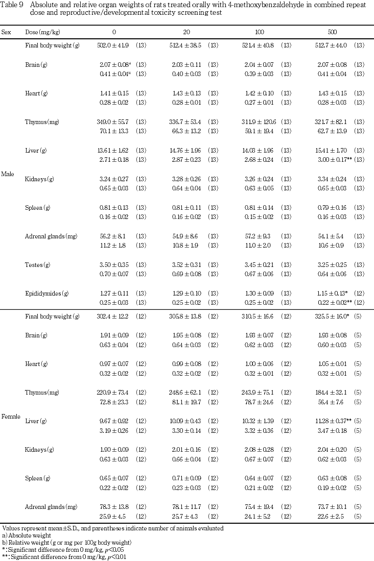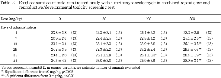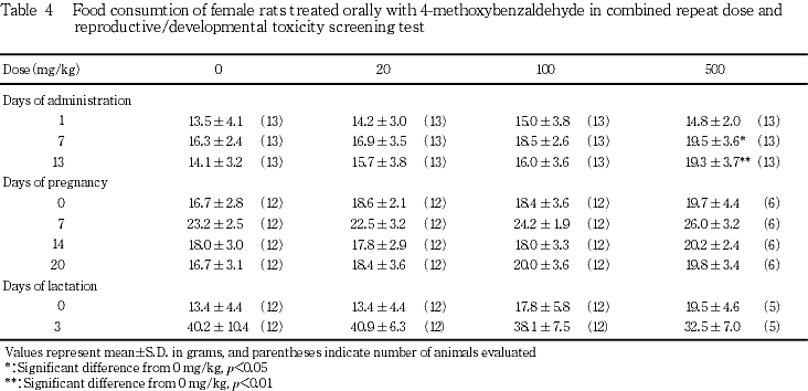 °Ê¾å¤Î·ë²Ì¡¤4-¥á¥È¥¥·¥Ù¥ó¥º¥¢¥ë¥Ç¥Ò¥É¤Î100 mg/kg°Ê¾å¤ÎÅêÍ¿¤Ç¤Ï¡¤È︳ʪ¼ÁÅêÍ¿¤Î±Æ¶Á¤Ë¤è¤ë¤È¹Í¤¨¤é¤ì¤ëÂνŤÎÁý²Ã(»óͺ)¡¤Á°°ßÇ´Ëì¾åÈé¤Î²á·ÁÀ®(»ó)¡¤·ì¾®ÈÄ¿ô¤Î¸º¾¯(»ó)¤¬Ç§¤á¤é¤ì¤ë¤³¤È¤«¤é¡¤4-¥á¥È¥¥·¥Ù¥ó¥º¥¢¥ë¥Ç¥Ò¥É¤Î°ìÈÌÆÇÀ³ØÅªÊѲ½¤Ë´Ø¤¹¤ë̵ºîÍÑÎ̤ϻóͺ¤È¤â20 mg/kg¤È¿äÄꤵ¤ì¤ë¡¥¤Þ¤¿¡¤4-¥á¥È¥¥·¥Ù¥ó¥º¥¢¥ë¥Ç¥Ò¥É¤Î·Ð¸ýÅêÍ¿»þ¤ÎɸŪ´ï´±¤Ï°ß¤Ê¤é¤Ó¤Ë´Î¡¤Ç¤¢¤ë¤È¿äÄꤵ¤ì¤ë¡¥