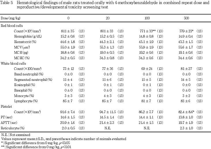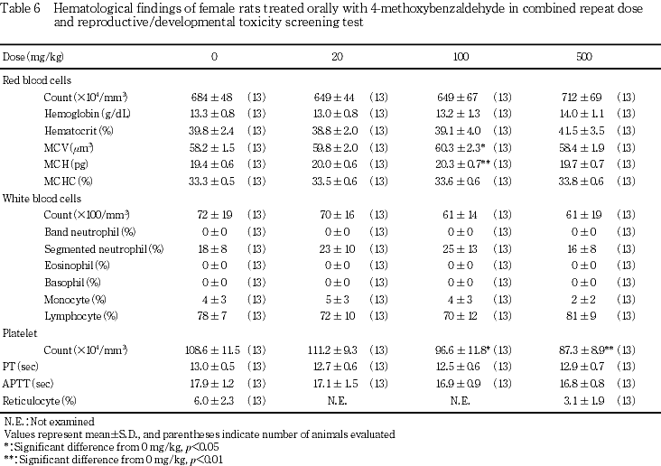 ·ì±Õ³Ø¸¡ºº¤Ç¤Ïͺ¤Ë¤ª¤¤¤Æ¤Ï500 mg/kgÅêÍ¿·²¤Ç¡¤»ó¤Ë¤ª¤¤¤Æ¤Ï100 mg/kg°Ê¾å¤ÎÅêÍ¿·²¤Ç¡¤¤½¤ì¤¾¤ì·ì¾®ÈÄ¿ô¤ÎͰդʸº¾¯¤¬Ç§¤á¤é¤ì¤¿¡¥·ì¾®ÈÄ¿ô¤Î¸º¾¯¤Ï¡¤Ëܻ¤ÎÍÑÎÌÀßÄê¤Î¤¿¤á¤ÎͽÈ÷»î¸³¤Ë¤ª¤¤¤Æ¤â¡¤14Æü´Ö¤ÎÅêÍ¿¤Ç»ó¤Î1000 mg/kgÅêÍ¿·²¤Ë¤ß¤é¤ì¤Æ¤ª¤ê¡¤4-¥á¥È¥¥·¥Ù¥ó¥º¥¢¥ë¥Ç¥Ò¥É¤ÎÅêÍ¿¤Ë¤è¤ë±Æ¶Á¤ÈȽÃǤµ¤ì¤ë¤¬¡¤Ëܻ¤Ë¤ª¤¤¤Æ¤Ï¹ü¿ñ¤ËÊѲ½¤Ïǧ¤á¤é¤ì¤º¡¤¤Þ¤¿¡¤Ãø¤·¤¤½Ð·ìÅù¤â¤ß¤é¤ì¤Ê¤¤¤³¤È¤«¤é¡¤¤½¤Îµ¡½ø¤ÏÌÀ¤é¤«¤Ç¤Ï¤Ê¤¤¡¥