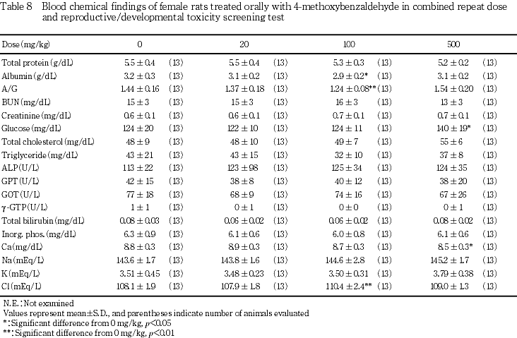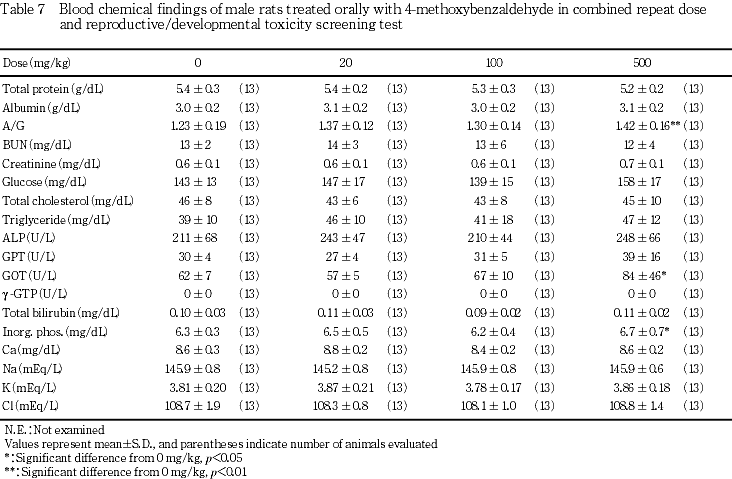 ͺ¤Î500 mg/kgÅêÍ¿·²¤Ë¤ª¤¤¤Æ¤Ï¡¤A/GÈæ¡¤GOT³èÀ¤Ê¤é¤Ó¤Ë̵µ¡¥ê¥óÇ»ÅÙ¤ÎͰդÊÁý²Ã¤¬Ç§¤á¤é¤ì¤¿¡¥°ìÊý¡¤»ó¤Î100 mg/kgÅêÍ¿·²¤Ë¤ª¤¤¤Æ¤Ï¡¤¥¢¥ë¥Ö¥ß¥óÇ»ÅÙ¤ª¤è¤ÓA/GÈæ¤Î¸º¾¯¤Ê¤é¤Ó¤Ë±öÁÇÇ»ÅÙ¤ÎÁý²Ã¤¬¤ß¤é¤ì¤¿¤¬¡¤ÍÑÎ̤˰͸¤·¤¿ÊѲ½¤Ç¤Ï¤Ê¤¤»ö¤«¤é¡¤4-¥á¥È¥¥·¥Ù¥ó¥º¥¢¥ë¥Ç¥Ò¥É¤ÎÅêÍ¿¤Ë¤è¤ë±Æ¶Á¤Ç¤Ï¤Ê¤¤¤ÈȽÃǤ·¤¿¡¥»ó¤Î500 mg/kgÅêÍ¿·²¤Ë¤ª¤¤¤Æ¤Ï¡¤¥Ö¥É¥¦ÅüÇ»ÅÙ¤ÎÁý²Ã¤Ê¤é¤Ó¤Ë¥«¥ë¥·¥¦¥àÇ»Å٤θº¾¯¤¬¤½¤ì¤¾¤ìͰդËǧ¤á¤é¤ì¤¿¡¥