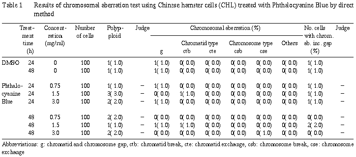いずれの実験条件下においても、銅フタロシアナ−トは倍数体を誘発しなかった。