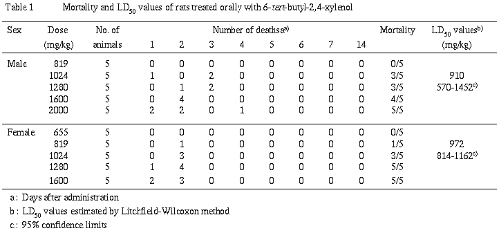 Single Dose Oral Toxicity Test of 6-tert-Butyl-2,4-xylenol in Rats