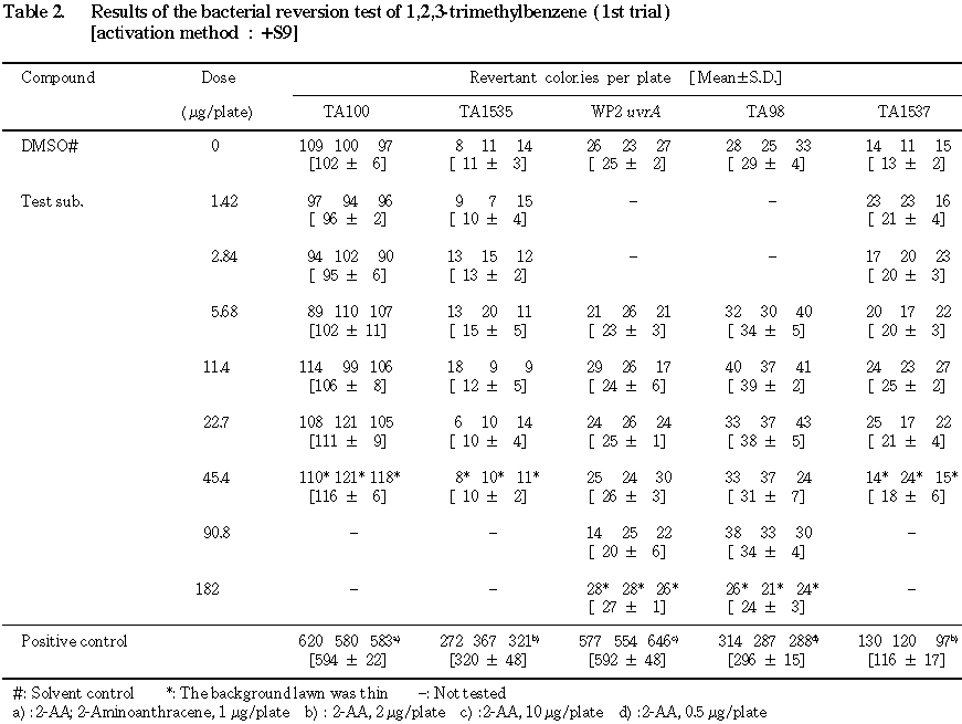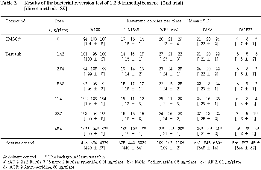 1,2,3-トリメチルベンゼンの細菌を用いる復帰突然変異試験