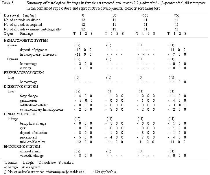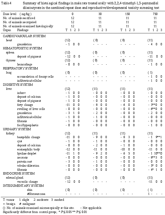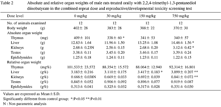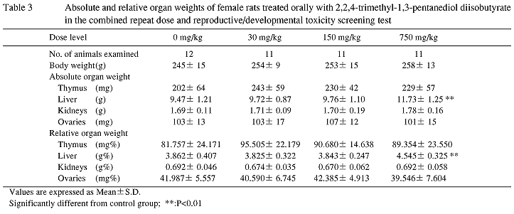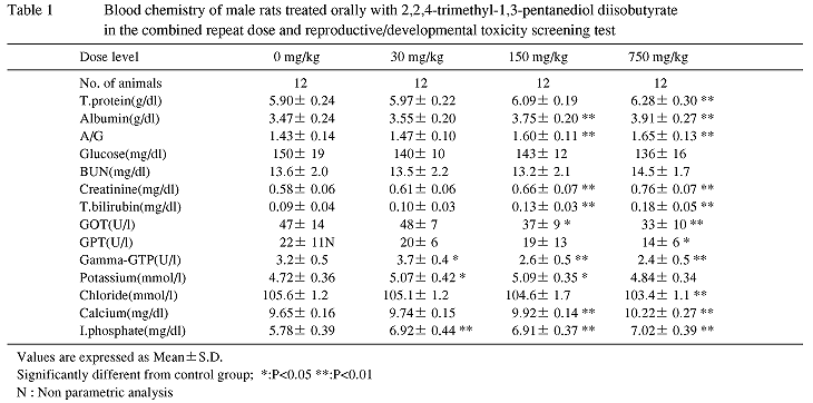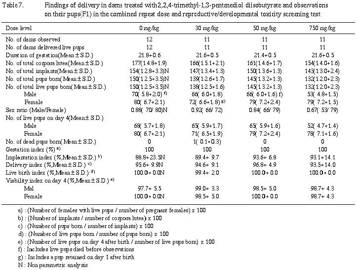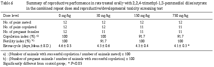 °Ê¾å¤Î¤³¤È¤«¤é¡¤2,2,4-¥È¥ê¥á¥Á¥ë-1,3-¥Ú¥ó¥¿¥ó¥¸¥ª¡¼¥ë¥¸¥¤¥½¥Ö¥Á¥ì¡¼¥ÈÅêÍ¿¤Ë¤è¤ë»óͺ¤ÎÀ¸¿£¤ËµÚ¤Ü¤¹±Æ¶Á¤ª¤è¤Ó»ùưʪ¤ÎȯÀ¸¡¦È¯°é¤ËµÚ¤Ü¤¹±Æ¶Á¤Ï¡¤750mg/kg/dayÅêÍ¿¤Ë¤è¤Ã¤Æ¤âǧ¤á¤é¤ì¤º¡¤Ìµ±Æ¶ÁÎ̤ϤȤâ¤Ë750mg/kg/day¤ÈȽÃǤµ¤ì¤ë¡¥
