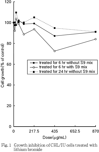 以上の成績から,臭化リチウムのCHL/IU細胞に対する染色体異常誘発性は陰性と判定した.
