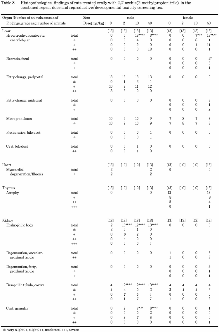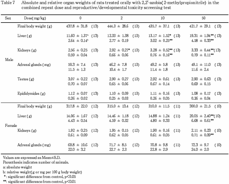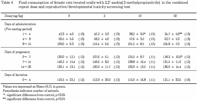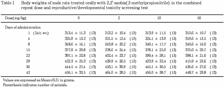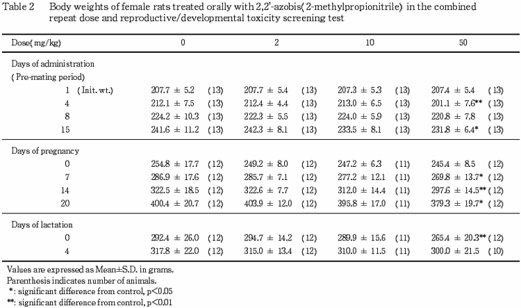 ¤³¤ì¤é¤Î¤³¤È¤«¤é¡¤Ëܻ¾ò·ï²¼¤Ç¤Ï¡¤2,2'-¥¢¥¾¥Ó¥¹(2-¥á¥Á¥ë¥×¥í¥Ñ¥ó¥Ë¥È¥ê¥ë)¤ÎÈ¿ÉüÅêÍ¿ÆÇÀ¤Ë´Ø¤¹¤ë̵±Æ¶ÁÎ̤ϡ¤Íº¤Ç¤Ï 2 mg/kg/day ¤ò²¼²ó¤ëÎÌ¡¤»ó¤Ç¤Ï 2 mg/kg/day ¤Ç¤¢¤ë¤È·ëÏÀ¤µ¤ì¤ë¡¥¤Þ¤¿¡¤À¸¿£È¯À¸ÆÇÀ¤Ë´Ø¤¹¤ë̵±Æ¶ÁÎ̤ϡ¤Íº¤Ç¤Ï 50 mg/kg/day¡¤»ó¤Ç¤Ï 10 mg/kg/day ¤Ç¤¢¤ë¤È·ëÏÀ¤µ¤ì¤ë¡¥