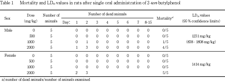 2-tert-ブチルフェノールのラットを用いる単回経口投与毒性試験