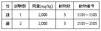 試験群の構成は、雌雄各1群ずつの計2群とした。