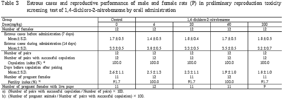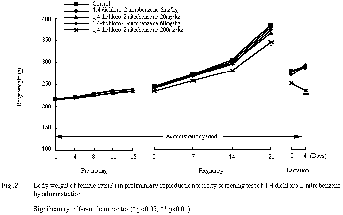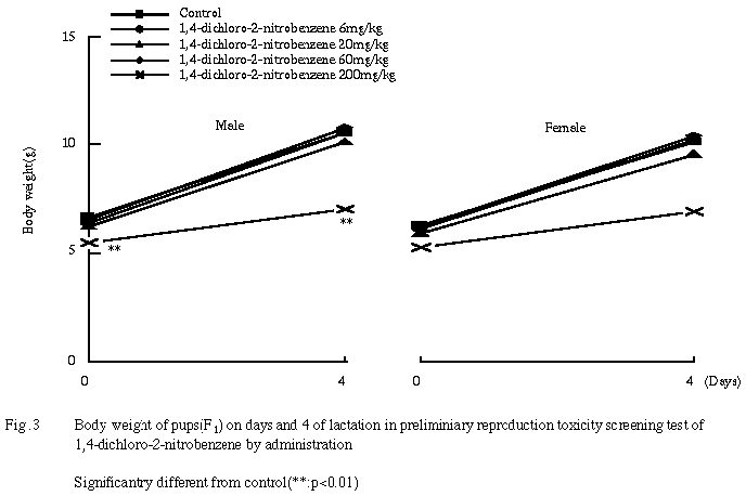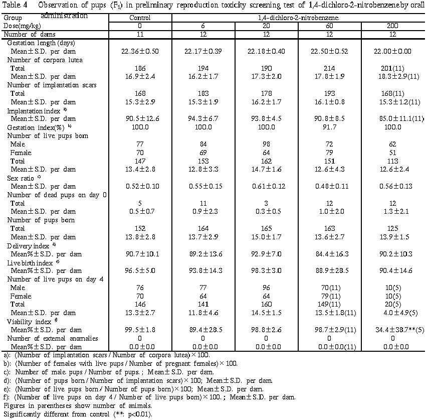 ¡¡»óưʪ¤Ç¤Ï¡¤Ç¥¿± 20 Æü¤Ë 200 mg/kg·²¤Î 1 ÊìÆ°Êª¤¬»àË´¤·¤¿¡¥Åöưʪ¤Ç¤Ï¡¤¾åµ¤Î¤è¤¦¤ÊÀݱÂÎ̤ÎÄãÃͤ˲䨤ÆÇ¥¿±¤Ë¤è¤ëÉé²Ù¤¬»àË´¸¶°ø¤È¿ä¬¤µ¤ì¤¿¡¥ÅöÎã¤ò´Þ¤à 200 mg/kg·²¤Î¶»Á£¡¤ç£Â¡¤Ê¤É¤Ë¤ß¤é¤ì¤¿ÁÈ¿¥ÊѲ½¤â¡¤È︳ʪ¼ÁÅêÍ¿¤Ë²Ã¤¨¤ÆÇ¥¿±¤ÎÉé²Ù¤Ë¤è¤ë±Æ¶Á¤Ëµ¯°ø¤¹¤ë¤â¤Î¤È»×¤ï¤ì¤¿¡¥Ç¥¿± 22 Æü¤ª¤è¤ÓʬÊÚÅÓÃæ¤Î»àË´Îã¤Î˶¸¡¤Ç¤Ï»àË´ÂÛ»ù¤¬¹ç·× 22 Îãǧ¤á¤é¤ì¤¿¤¬¡¤Áá´ü¤¢¤ë¤¤¤Ï¸å´üµÛ¼ýæõ¤Ï¤ß¤é¤ì¤Ê¤«¤Ã¤¿¡¥¤Þ¤¿¡¤Ó®°é´ü´ÖÃæ¤Ë 4 Îã¤ÎÊìÆ°Êª¤¬»àË´¤·¤¿¡¥¤µ¤é¤Ë¡¤3 ÊìÆ°Êª¤ÇÓ®°éÉÔÁ´¤¬¤ß¤é¤ì¡¤2 ÊìÆ°Êª¤Ç¤Ï¿·À¸»ù¤ÎÁ´Î㤬»àË´¤·¤¿¡¥¤¹¤Ê¤ï¤Á¡¤200 mg/kg·²¤Ç¤Ï 12 ÎãÃæ¤Ç¼õÂÛ»ó¿ô¤Ï 11 Î㡤¿·À¸»ù½Ð»º»ó¿ô¤Ï 9 Îã¤Ç¤¢¤ê¡¤¤½¤ÎÆâ¤ÇÓ®°é 4 Æü¤Þ¤Ç¤ÎÓ®°é´°Î»Æ°Êª¿ô¤Ï 3 Îã¤Î¤ß¤Ç¤¢¤Ã¤¿¡¥¤³¤ì¤é¤Î·ë²Ì¤«¤é¡¤1,4-¥¸¥¯¥í¥í-2-¥Ë¥È¥í¥Ù¥ó¥¼¥ó¤Ï¼þ»º´ü¤ª¤è¤Ó¼øÆý´ü¤ÎÊìÆ°Êª¤ËÂФ·¤Æ±Æ¶Á¤òµÚ¤Ü¤·¤Æ¤¤¤ë¤È¹Í¤¨¤é¤ì¤¿¡¥¤Þ¤¿¡¤60 mg/kg·²¤Î 1 ÊìÆ°Êª¤Ç¤Ï½Ð»º»ù¤Ï»àË´»ù¤Î¤ß¤Ç¤¢¤Ã¤¿¡¥Åö·²¤Ç¤Ï¡¤200 mg/kg·²¤Ç¤ß¤é¤ì¤¿¤è¤¦¤ÊÊìÆ°Êª¤Î»àË´¤Ï¤Ê¤¤¤â¤Î¤Î¡¤»à»º»ù¤Î¤ß¤Ç¿·À¸»ù¤¬¤ß¤é¤ì¤Ê¤«¤Ã¤¿¤³¤È¤Ï¡¤È︳ʪ¼Á¤¬¼þ»º´ü¤ÎÊìÆ°Êª¤ËÂФ·¤Æ±Æ¶Á¤òµÚ¤Ü¤·¤¿·ë²Ì¤È¿ä¬¤µ¤ì¤¿¡¥°ìÊý¡¤6 mg/kg·²¤Î 1 ÊìÆ°Êª¤Ç¿·À¸»ù¤ÎÁ´Î㤬»àË´¤·¤¿¤¬¡¤20 mg/kg·²¤Ç¤ÏƱÍͤÎÊѲ½¤Ï¤ß¤é¤ì¤º¡¤¤Þ¤¿ÊìÆ°Êª¤Î»àË´¡¤¤¢¤ë¤¤¤Ï»à»º»ù¤Î¤ß¤Ç¿·À¸»ù¤¬ÆÀ¤é¤ì¤Ê¤¤¤Ê¤É¤Î±Æ¶Á¤¬¤ß¤é¤ì¤Ê¤¤¤³¤È¤«¤é¡¤6 mg/kg·²¤Î¿·À¸»ù¤Î»àË´¤ÏÈ︳ʪ¼ÁÅêÍ¿¤È¤Î´ØÏ¢À¤Î¤Ê¤¤½ê¸«¤È¹Í¤¨¤é¤ì¤¿¡¥