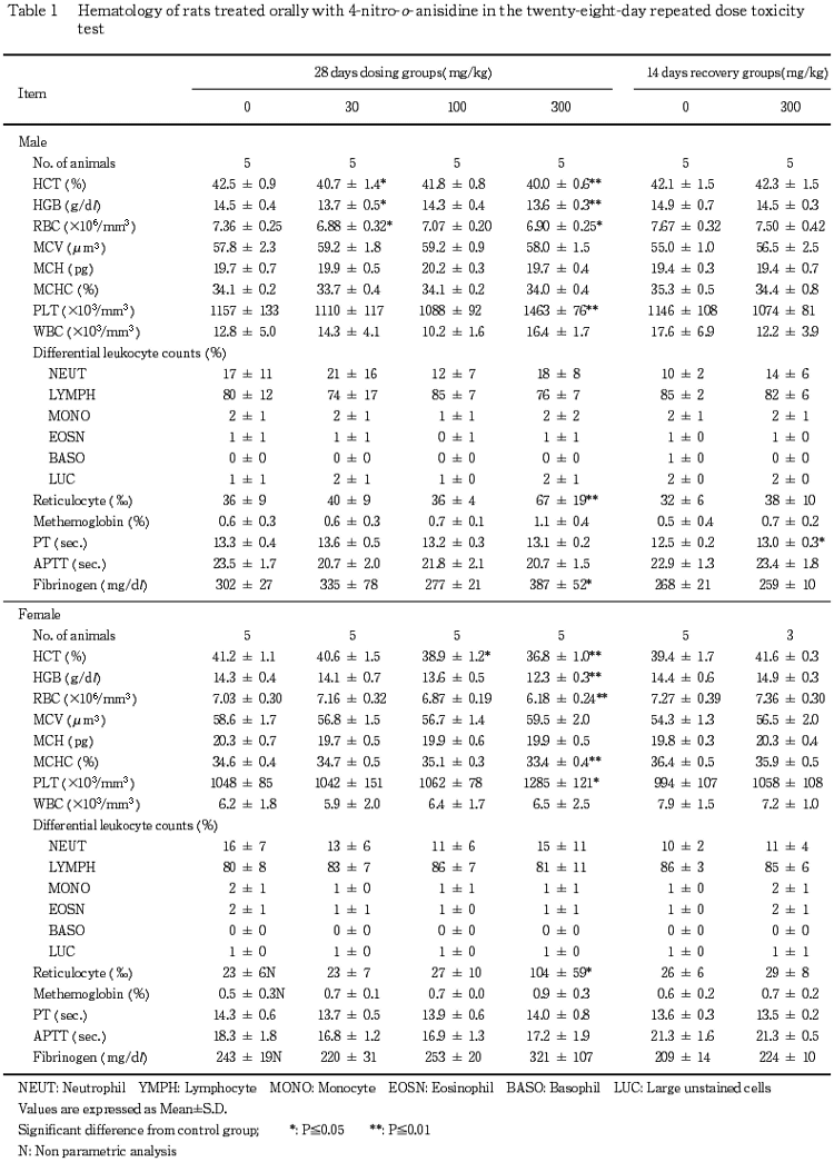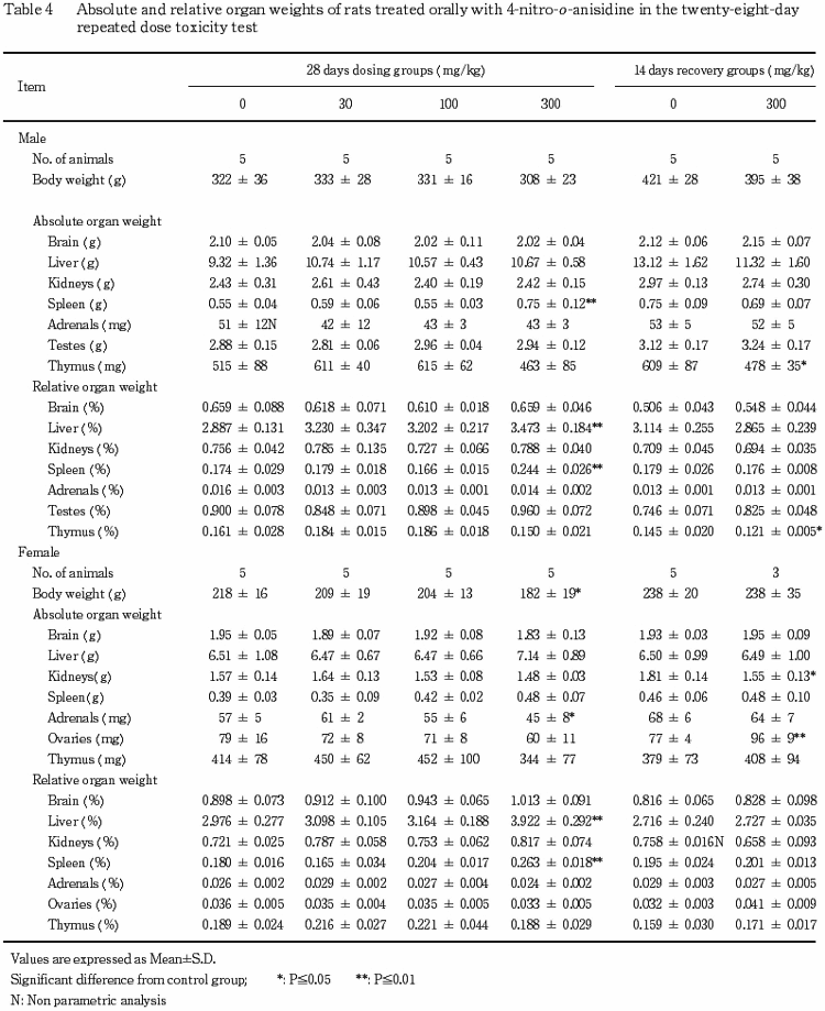 °Ê¾å¤Î·ë²Ì¡¤Ëܻ¾ò·ï²¼¤Ë¤ª¤±¤ë4-¥Ë¥È¥í-o-¥¢¥Ë¥·¥¸¥ó¤Î̵±Æ¶ÁÎÌ(NOEL)¤Ï¡¤»óͺ¤È¤â¤Ë30 mg/kg/day¤È¹Í¤¨¤é¤ì¤¿¡¥